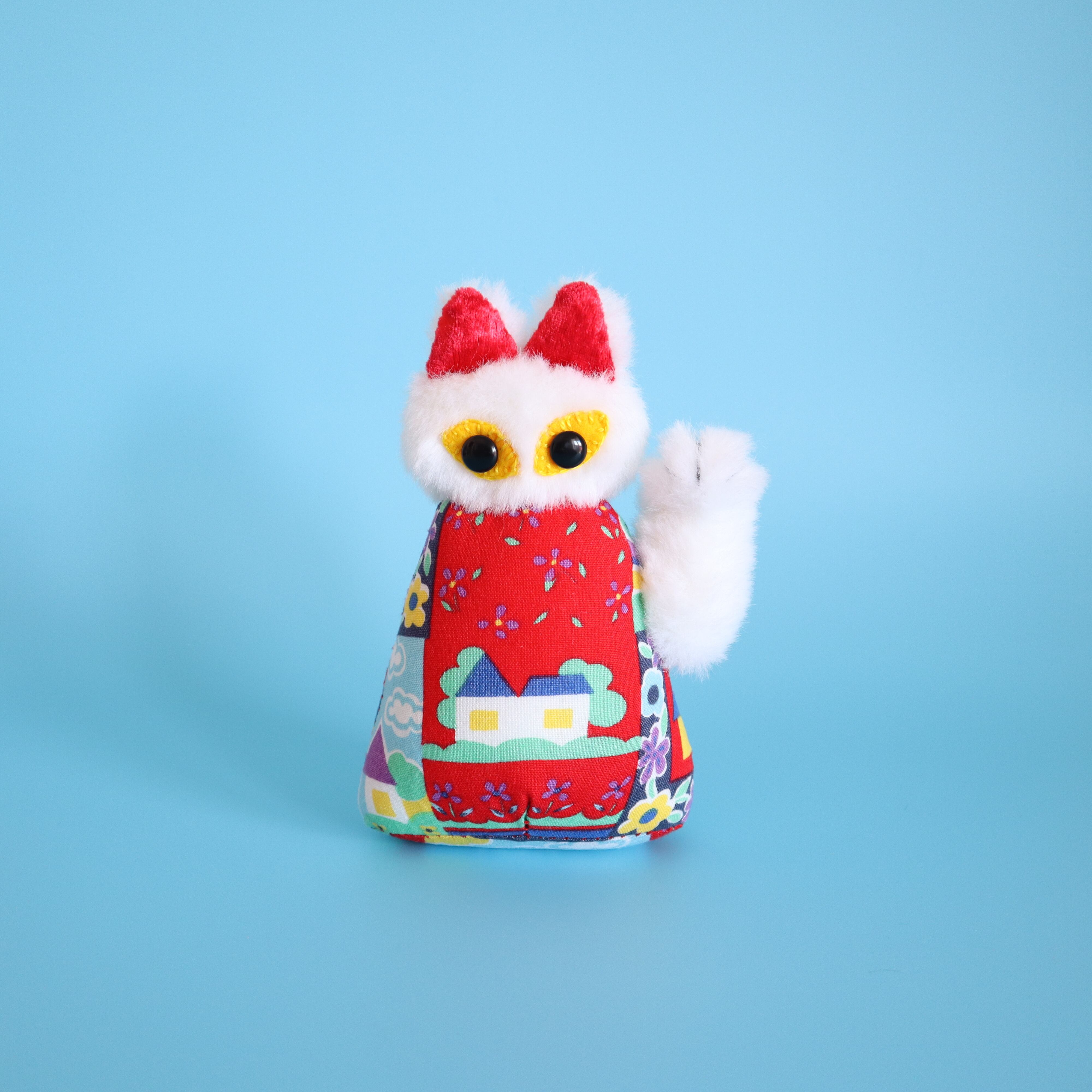 MANEKI CAT (VINTAGE DRESS x WHITE FUR)